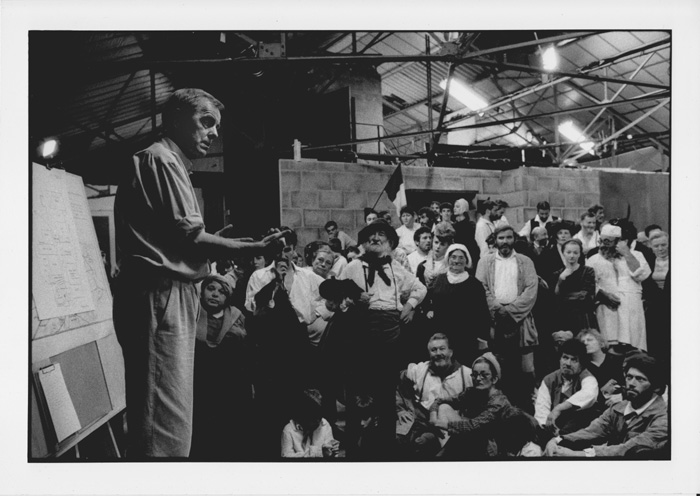 Peter Watkins on the set of La Commune (photos by Corrina Paltrinieri)